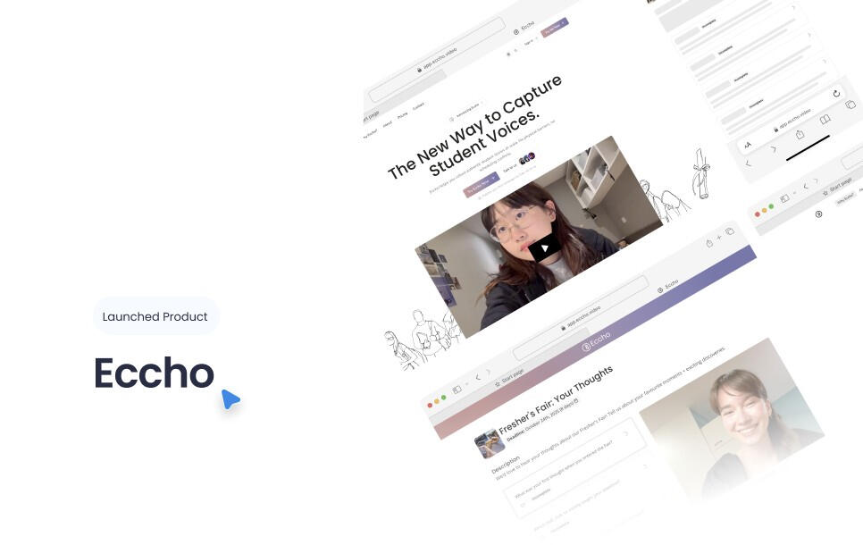 Higher education marketing relies on authentic storytelling, yet gathering User-Generated Content (UGC) is logistically challenging. Institutions must coordinate with a diverse group of global students and alumni, leading to high costs and friction when trying to source and transfer video assets.The Design Solution: Used by institutions across the UK and USA, Eccho provides an AI-powered workflow to collect real video testimonials quickly, easily, and at a fraction of the cost of traditional production.