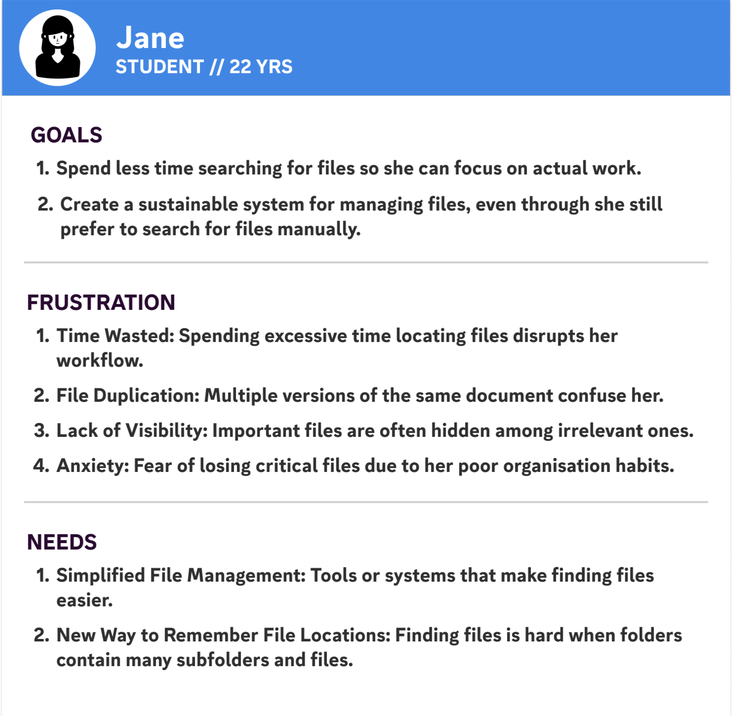 To better understand the gap, I developed the research plan, using a survey (N=34) to gather broad data and personal interviews (N=5) to uncover the motivations behind the numbers.The Awareness Gap: The environmental cost of data is invisible. 84% of participants were unaware that unused data consumes energy, and 71% didn't know cloud storage generates CO2.The Emotional Toll: Poor file management causes genuine distress. Over 66% of users struggle to locate cloud files, describing feelings of "despair" and "depression" when navigating their digital clutter.
